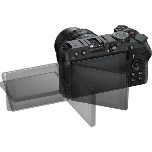 The Nikon Z30 features a 20.9MP DX-format CMOS sensor, UHD 4K30p and Full HD 120p video recording, a 3" 1.04m-dot free-angle touchscreen LCD, and a built-in stereo microphone. The Z30 also has a variety of features that make it ideal for vlogging, such as Eye and Face Detection, a tally lamp, and dedicated selfie controls.