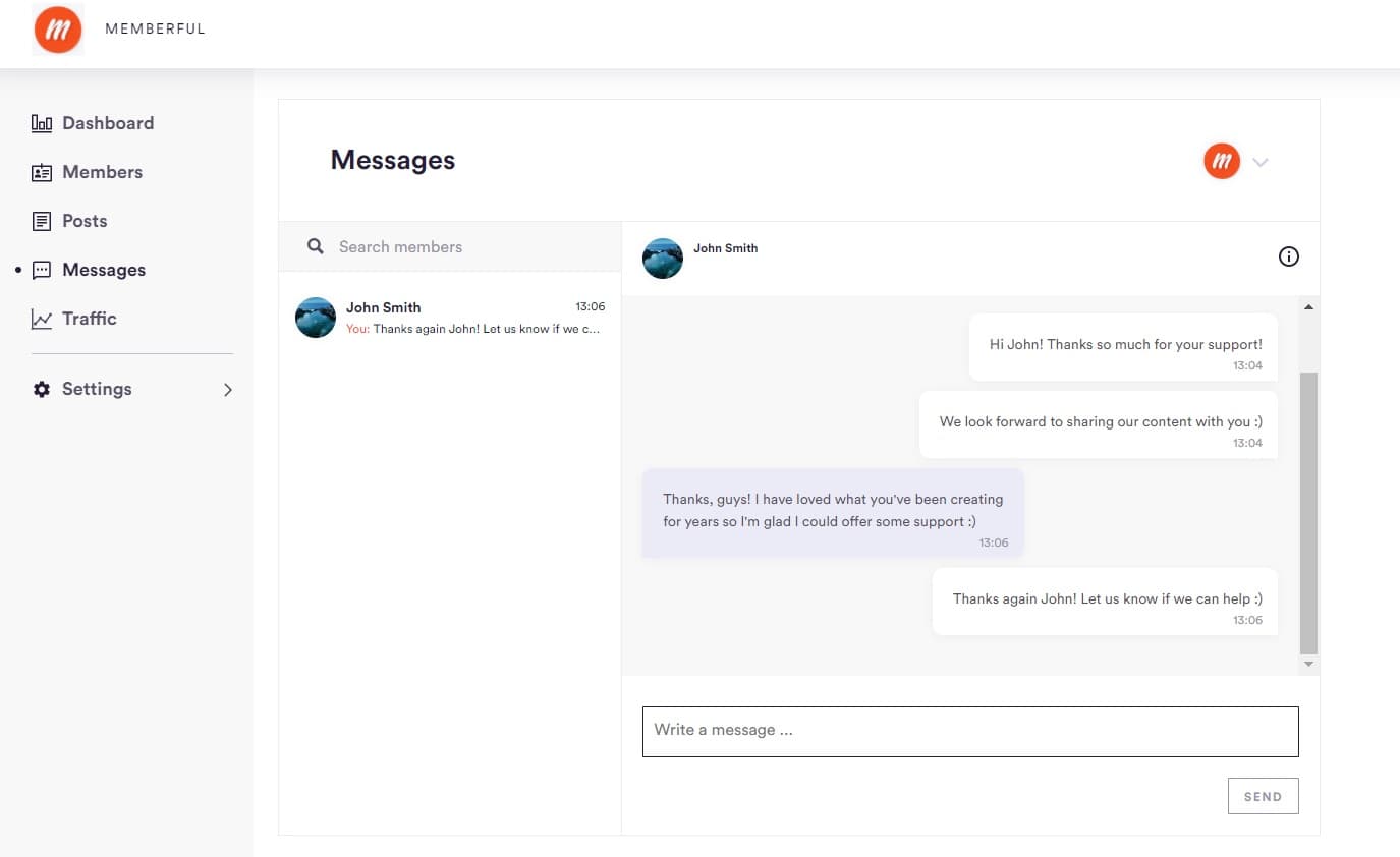 Posts Members Dashboard Messages Settings |