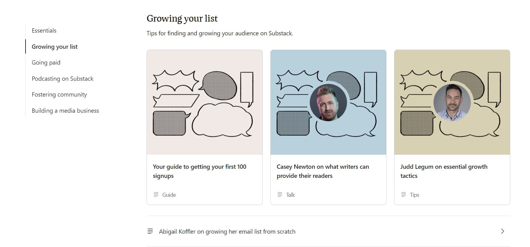 Two important ‘extra’ offerings are Resources and Threads. The Resources section offers tips and advice on growing your publication and building/monetizing your community.